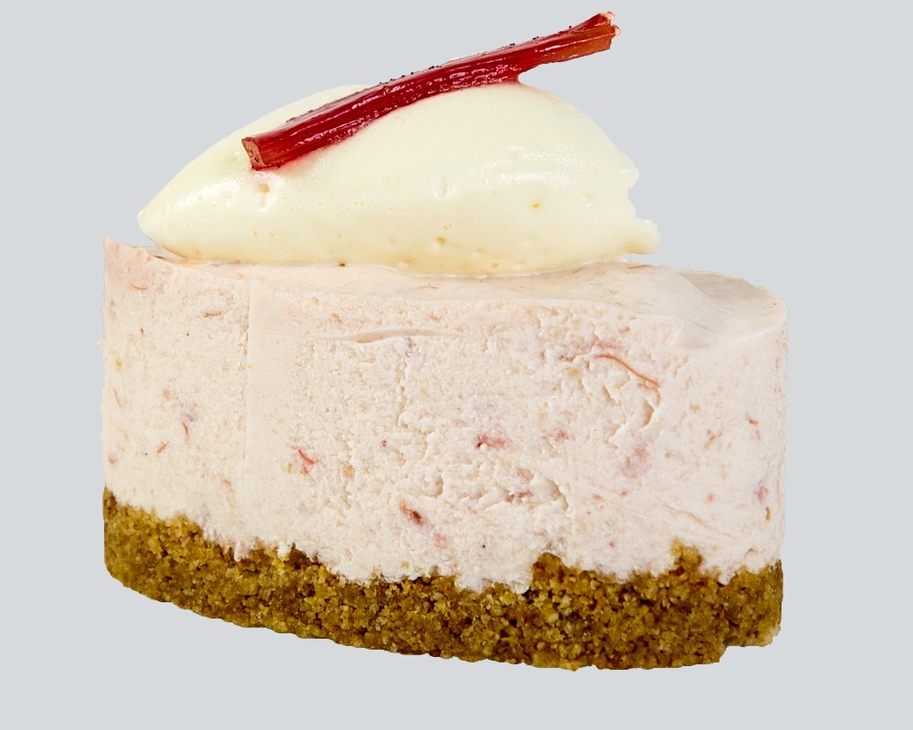 A homemade creamy strawberry cheesecake with a subtle flavour of Rhubarb & Vanilla.
